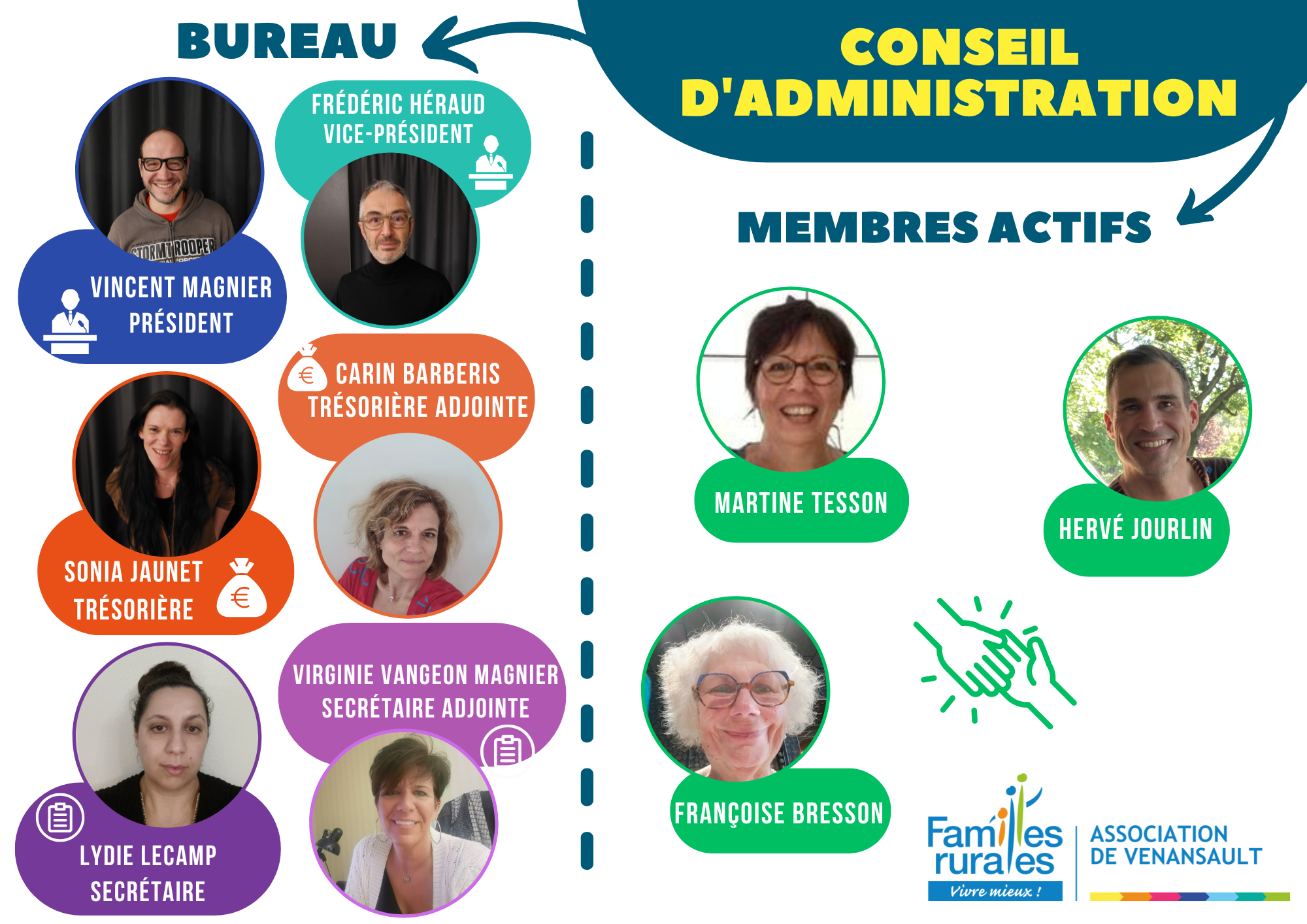 Voici les membres qui composent actuellement le Conseil d'Administration de l'association suite à l'Assemblée Générale du 12 avril 2024 et de l'élection du nouveau bureau le 18 avril 2024.
