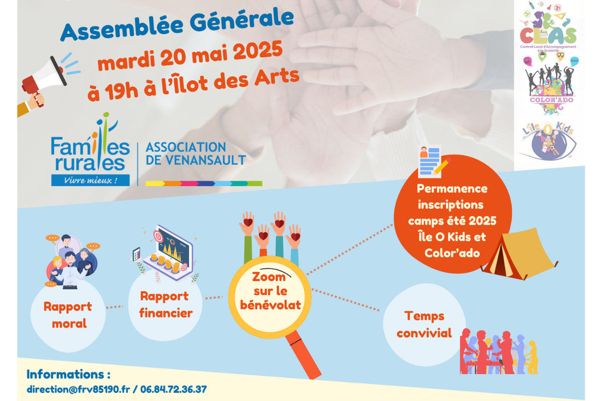 A l'issue de l'AG, se tiendra la permanence des camps d'été pour l'Île O Kids et le Color'ado.