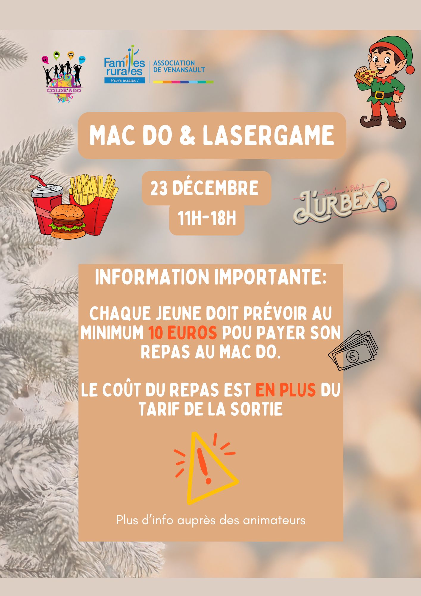 Info importante pour la sortie Mac Do Lasergame du 23 décembre 2025.