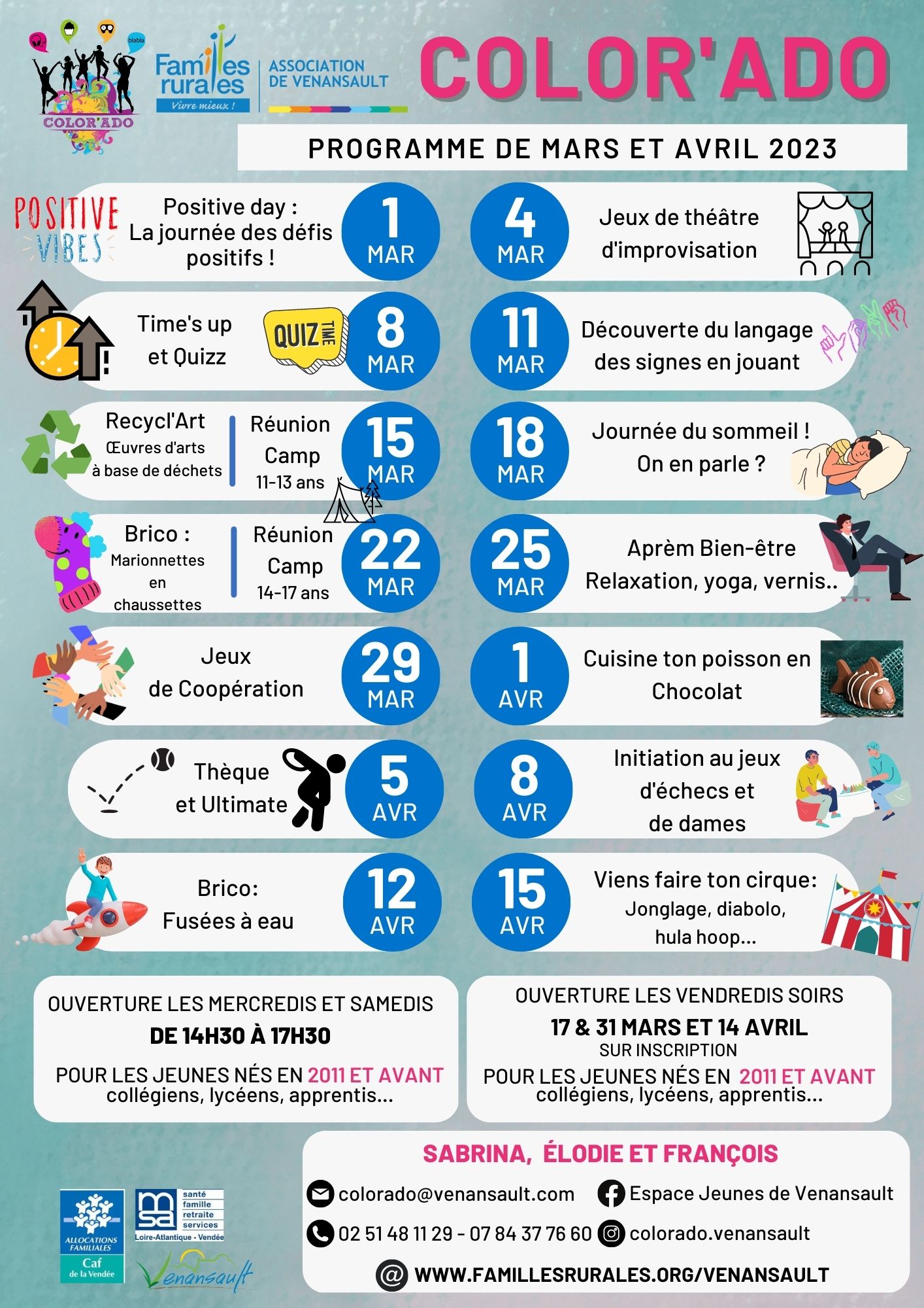 Pour avoir toutes les informations pratiques concernant le Color'Ado, n'hésitez-pas à consulter le règlement intérieur en cliquant ici !