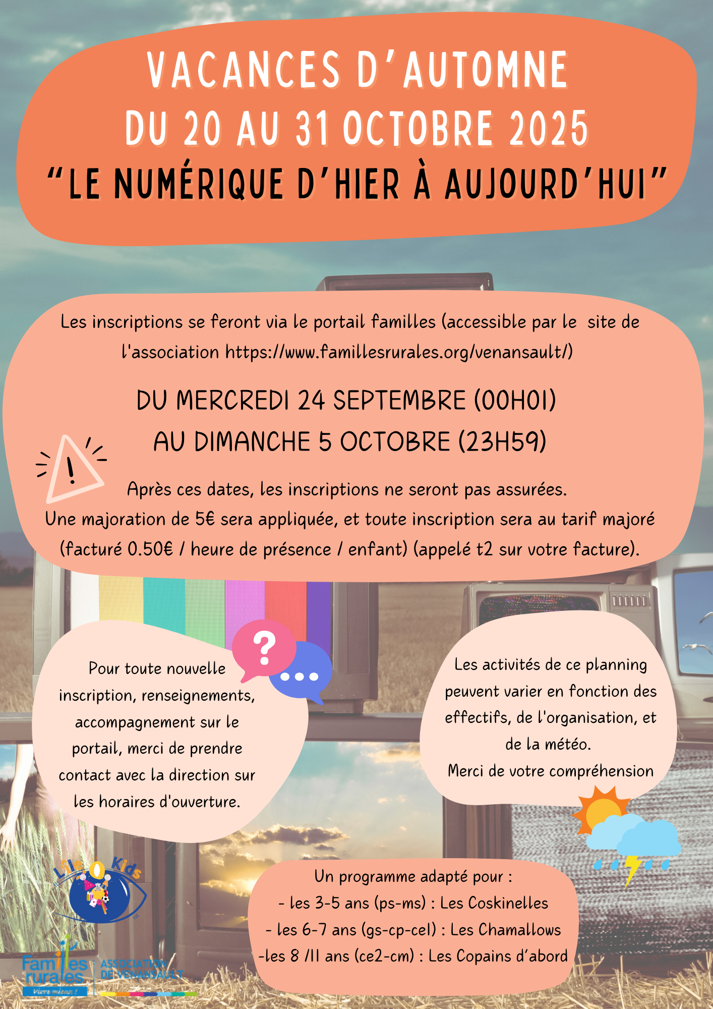 *Pendant les vacances scolaires, il est impératif d'inscrire vos enfants pour le péricentre (entre 17h et 19h) sur le Portail Familles.