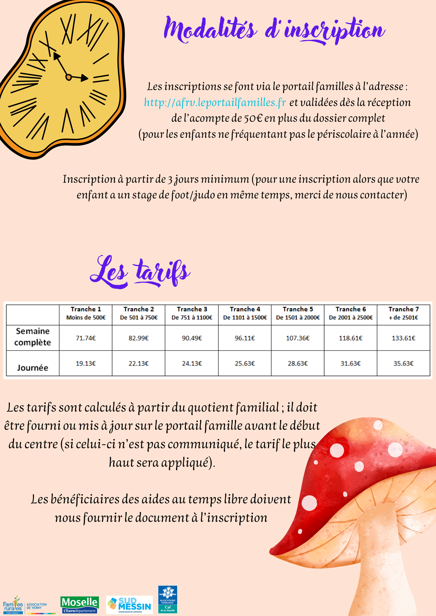 Les tarifs de chaque période de vacances sont indiqués dans le projet pédagogique.