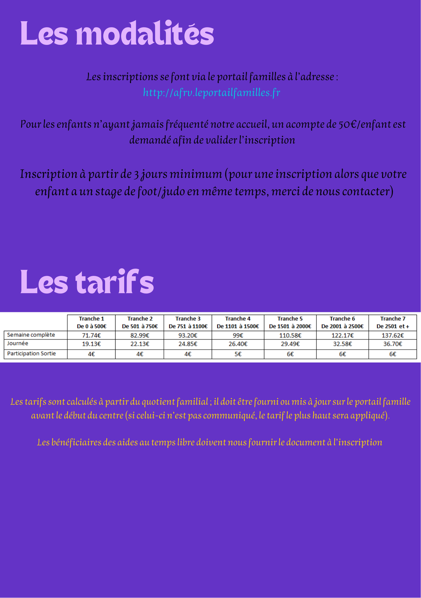 Les tarifs de chaque période de vacances sont indiqués dans le projet pédagogique.
