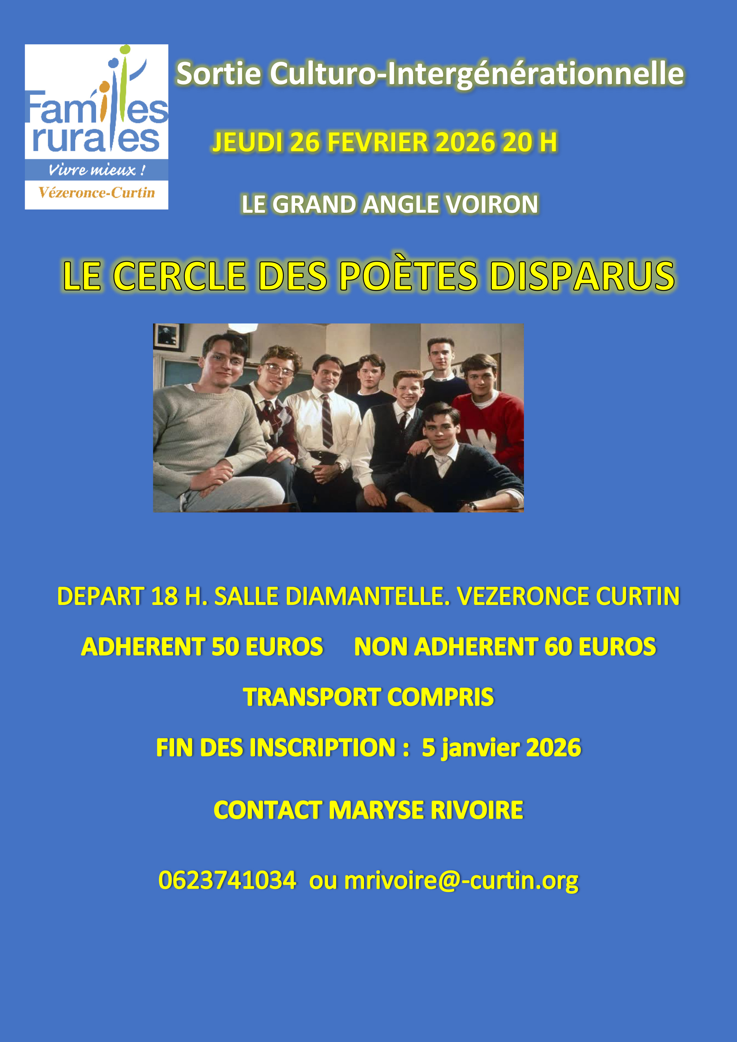 Participez à la sortie Sortie culturo-intergénérationnelle "Le cercle des poètes disparus" le Jeudi 26 février 2026
