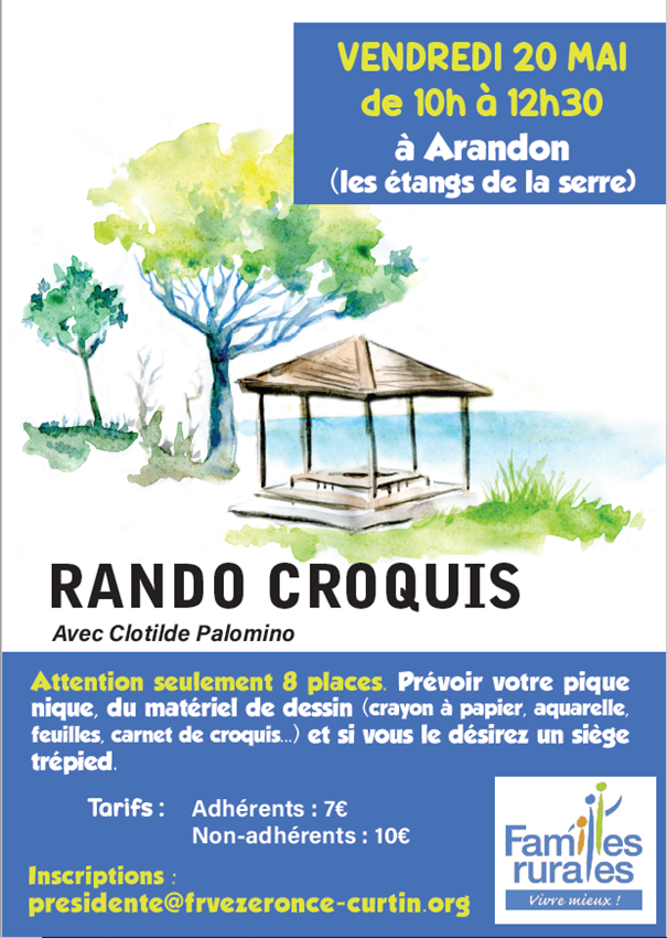 Venez participer à l'atelier Rando Croquis proposé et animé par notre professeure d'Arts Plastiques Clotilde Palomino le vendredi 20 mai à Arandon de 10h à 12h30 suivi d'un pique-nique.