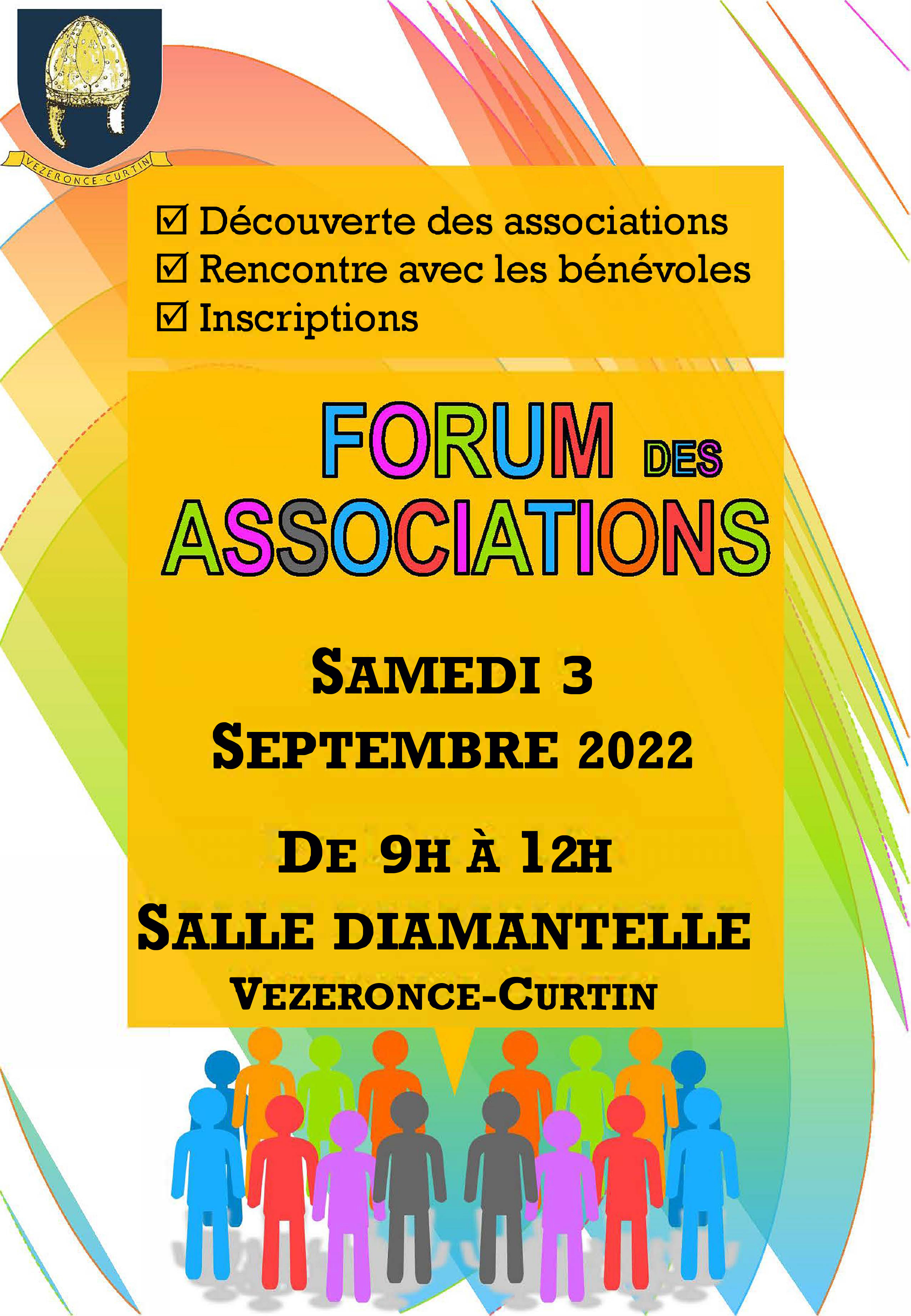 Le forum des associations de Vézeronce-Curtin se tiendra le Samedi 3 septembre 2022 de 09h00 à 12h00 à la salle Diamantelle.