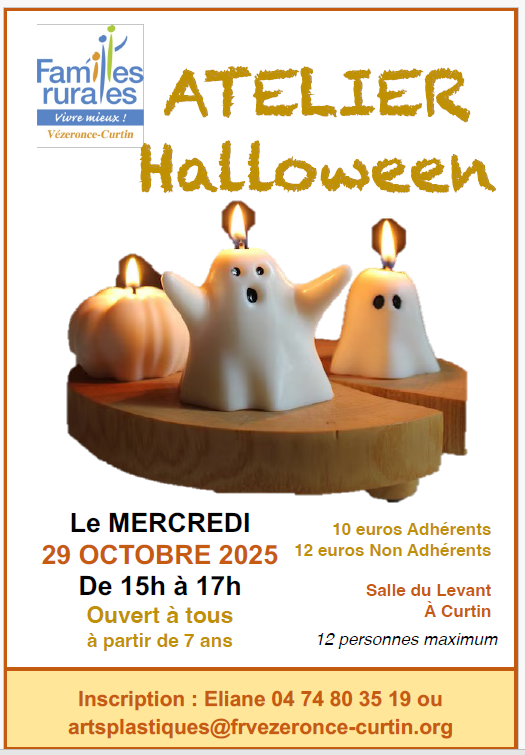 L'activité Arts-Plastiques vous propose un atelier Halloween le mercredi 29 octobre de 15h à 17h.