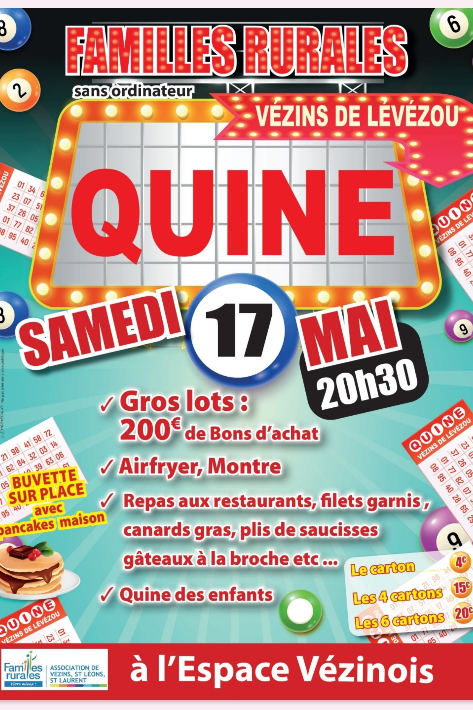 Quine de l'Association Familles Rurales Vezins, St Léons, St Laurent