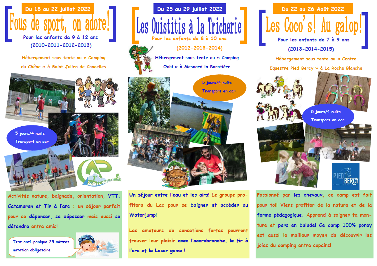 Il reste des places pour les mini " Fous de sport, on adore!" et les "Coco's, au galop!".