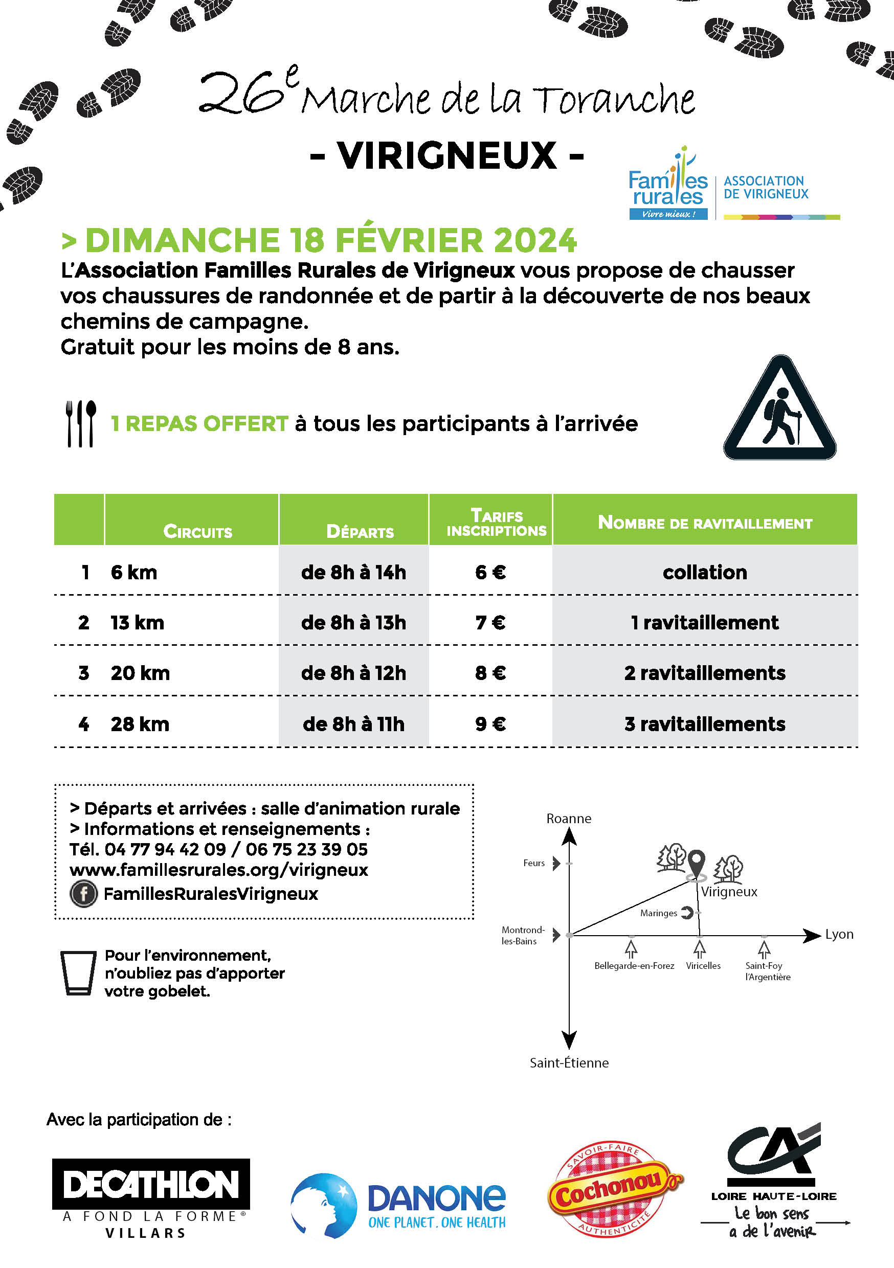 L'association Familles Rurales de Virigneux vous donne rendez-vous en février 2025 pour la 27e "Marche de la Toranche".